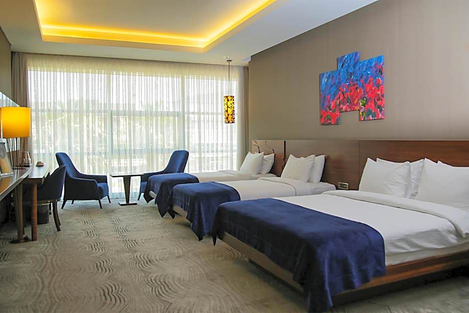 A broad slate of room types awaits, from Standard and Comfort to Family and Large Family, along with generous options like Deluxe Suite and Suite, 2 Bedroom. The Deluxe Suite offers a Queen-size bed, and larger configurations such as the Family and Deluxe spaces can accommodate multiple guests—up to eight adults in several layouts, with some suites designed for eight adults and several children.